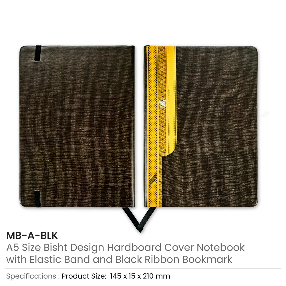 دفاتر بتصميم “البِشْت” العربي — A5 غلاف صلب مع رباط مطاطي، فاصل، وحامل قلم