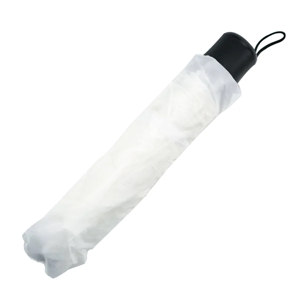 مظلة ثنائية الطي باللون الأبيض مع شريط فيلكرو وجراب