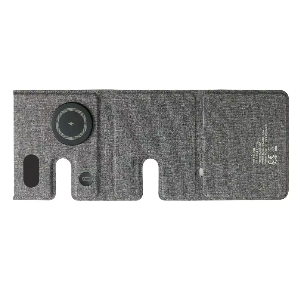 محطة شحن لاسلكي متعددة الاستخدامات بتصميم قابل للطي تجمع بين الأناقة والعملية لشحن الهاتف والساعة وسماعات الأذن في نفس الوقت. توفر شحناً سريعاً حتى 15W للهواتف المتوافقة، مع مزايا أمان ذكية مثل الحماية من زيادة التيار وزيادة الجهد وقصر الدائرة، لتجربة شحن آمنة وموثوقة في المنزل أو المكتب أو أثناء السفر. كما يساعد التصميم القابل للطي على تقليل الفوضى وتنظيم مساحة العمل بسهولة.
