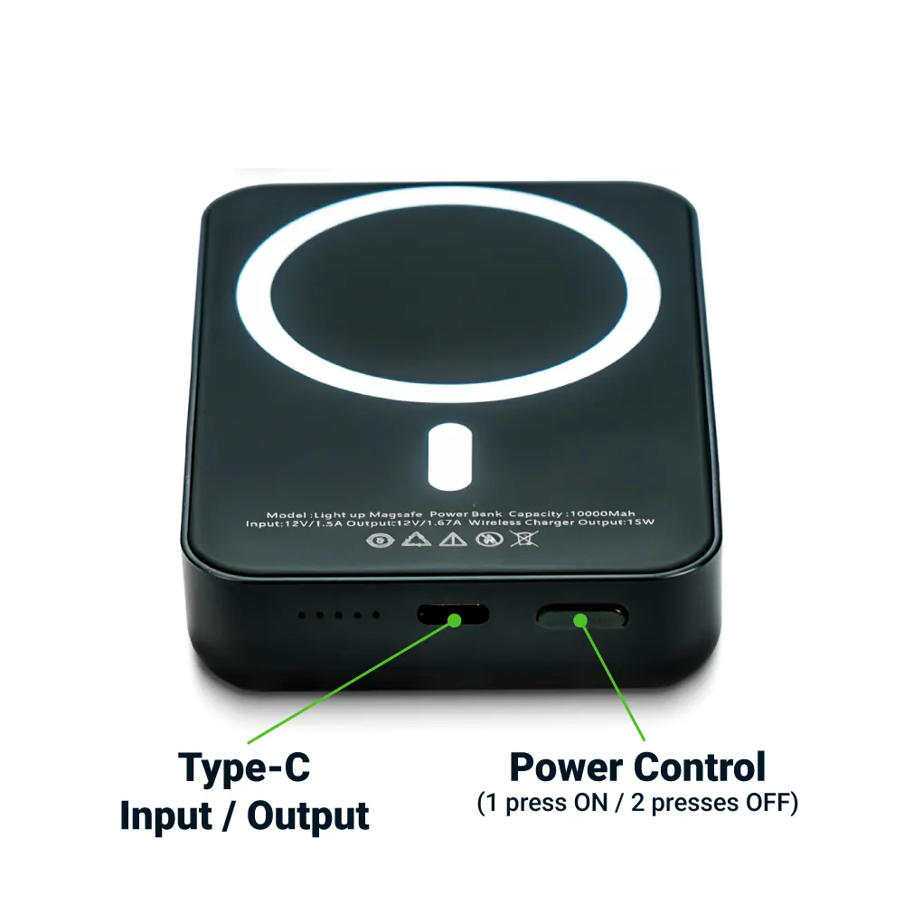 باوربانك MagSafe لاسلكي بشعار مضيء، شحن سريع 15W، سعة 10,000 mAh