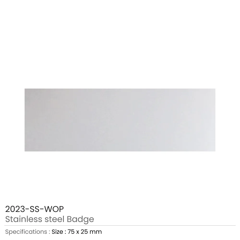 هذا الموديل مصنوع من ستانلس ستيل عالي الجودة مع طلاء نيكل وذهب ليمنح تشطيباً راقياً ومظهراً لامعاً يدوم، ويتوفر باللونين الفضي والذهبي. مقاس 75 × 25 مم يوفر مساحة مناسبة لعرض بيانات الموظف أو شعار الشركة بشكل واضح. كما تتوفر خيارات تثبيت متعددة حسب الاحتياج (مع ملحقات أو بدون)، ما يجعله مناسباً للاستخدام في المكاتب، الضيافة، المعارض، والمؤتمرات.