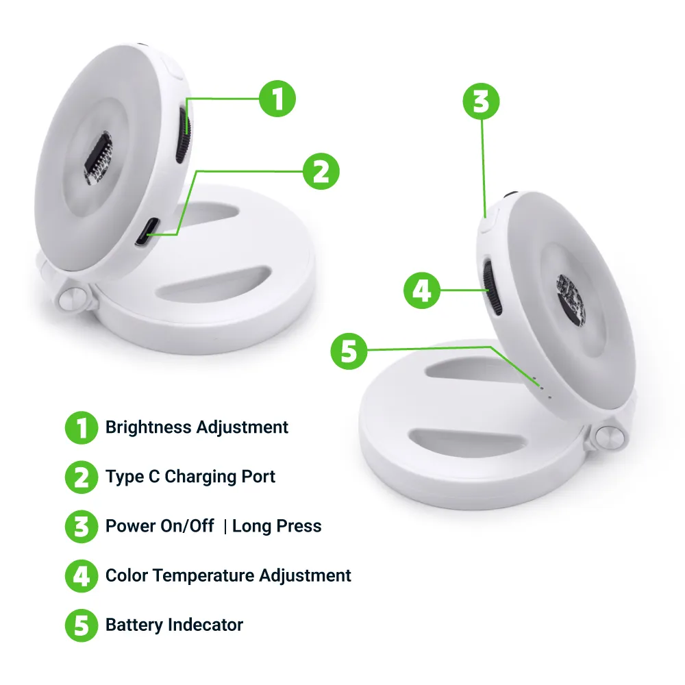 إضاءة رينغ لايت للصور بحجم الجيب مع MagSafe، LED ثنائي اللون، وتصميم قابل للطي 180°