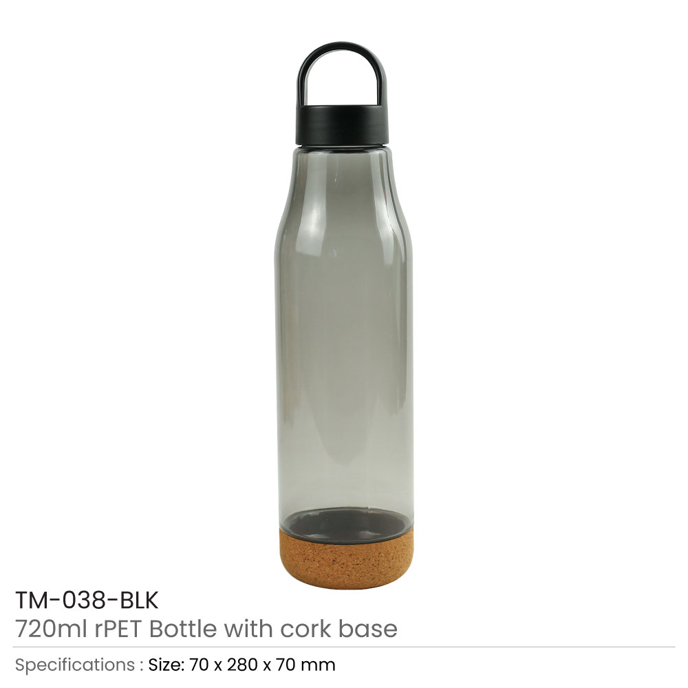 زجاجات rPET بسعة 720 مل مع قاعدة فلّين وغطاء PP لولبي ومقبض حمل