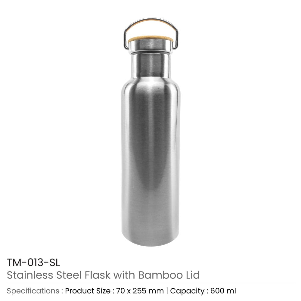 قارورة ستانلس ستيل بغطاء من الخيزران