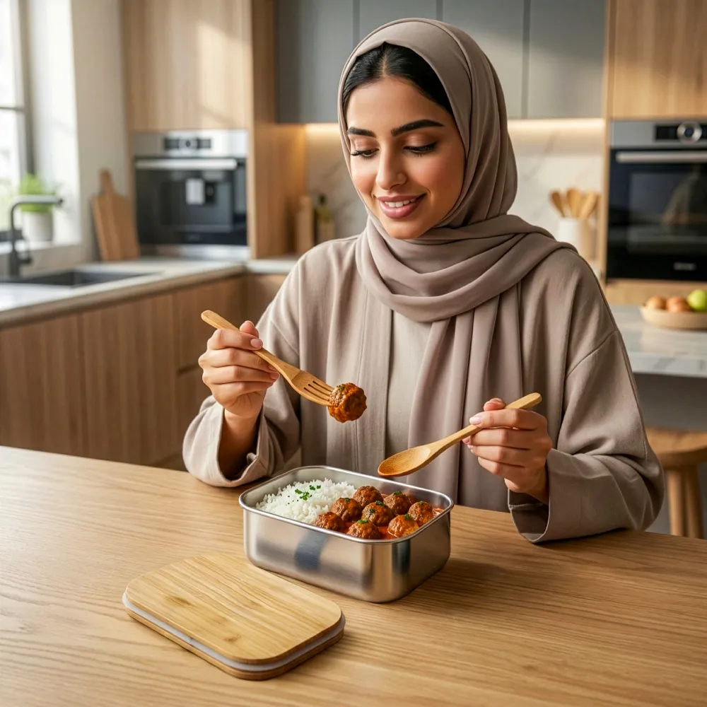 #علبة_غداء_ستانلس_ستيل #غطاء_بامبو #منتجات_صديقة_للبيئة #نمط_حياة_مستدام #علبة_غداء_قابلة_لإعادة_الاستخدام #بدون_بلاستيك #أكل_صحي #غداء_المكتب #غداء_المدرسة #تحضير_الوجبات #تصميم_بسيط #UAE #Dubai #AbuDhabi