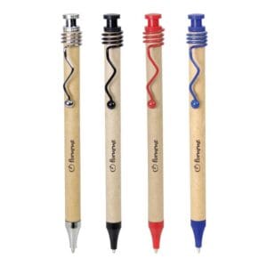 Pens made from recycled paper are great promotional eco-friendly pens. They had a barrel made entirely of recycled paper. While the push button, clip, and tip were made of chrome. As a result, the pen has a unique and sophisticated appearance. The video is really unusual. It folds multiple times around the barrel before forming a point at the end. It’s a creative object, then. In addition to the clip and barrel, it has a chic push button. So, turning on and off the ball pen is simple. A printing option for logos or signs is also included. To imprint the logo of your company, you can utilize screen printing, PAD printing, and UV printing.