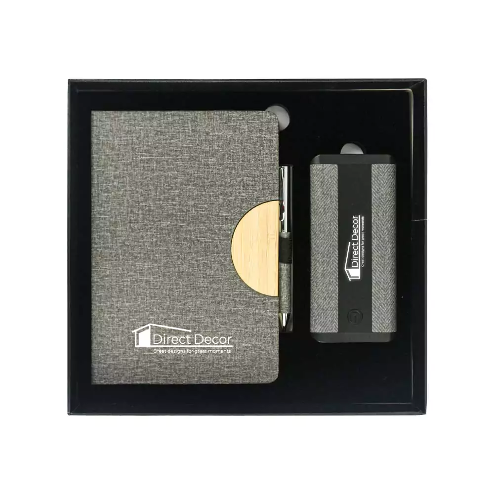 Care Instructions: To maintain the quality of the notebook and pens, store them in a cool, dry place. Clean the powerbank with a soft, damp cloth as needed.